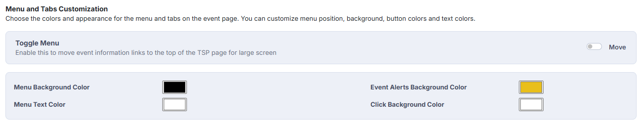 - On the Edit Event page, scroll down to Menu and Tabs Customization.